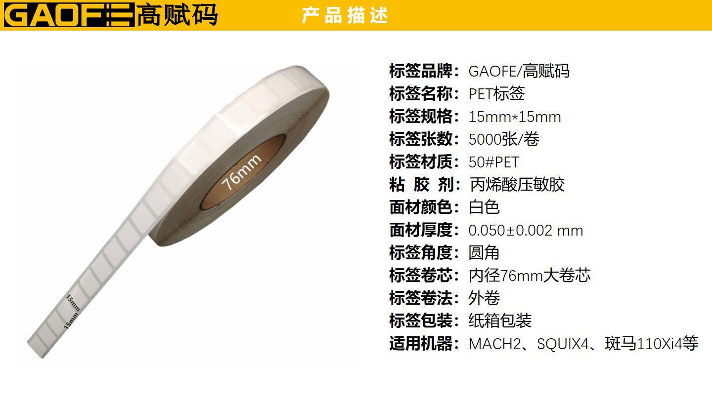 PET標(biāo)簽15mm*15mm 撕不爛標(biāo)簽 白色防水標(biāo)簽 不干膠標(biāo)簽-高賦碼