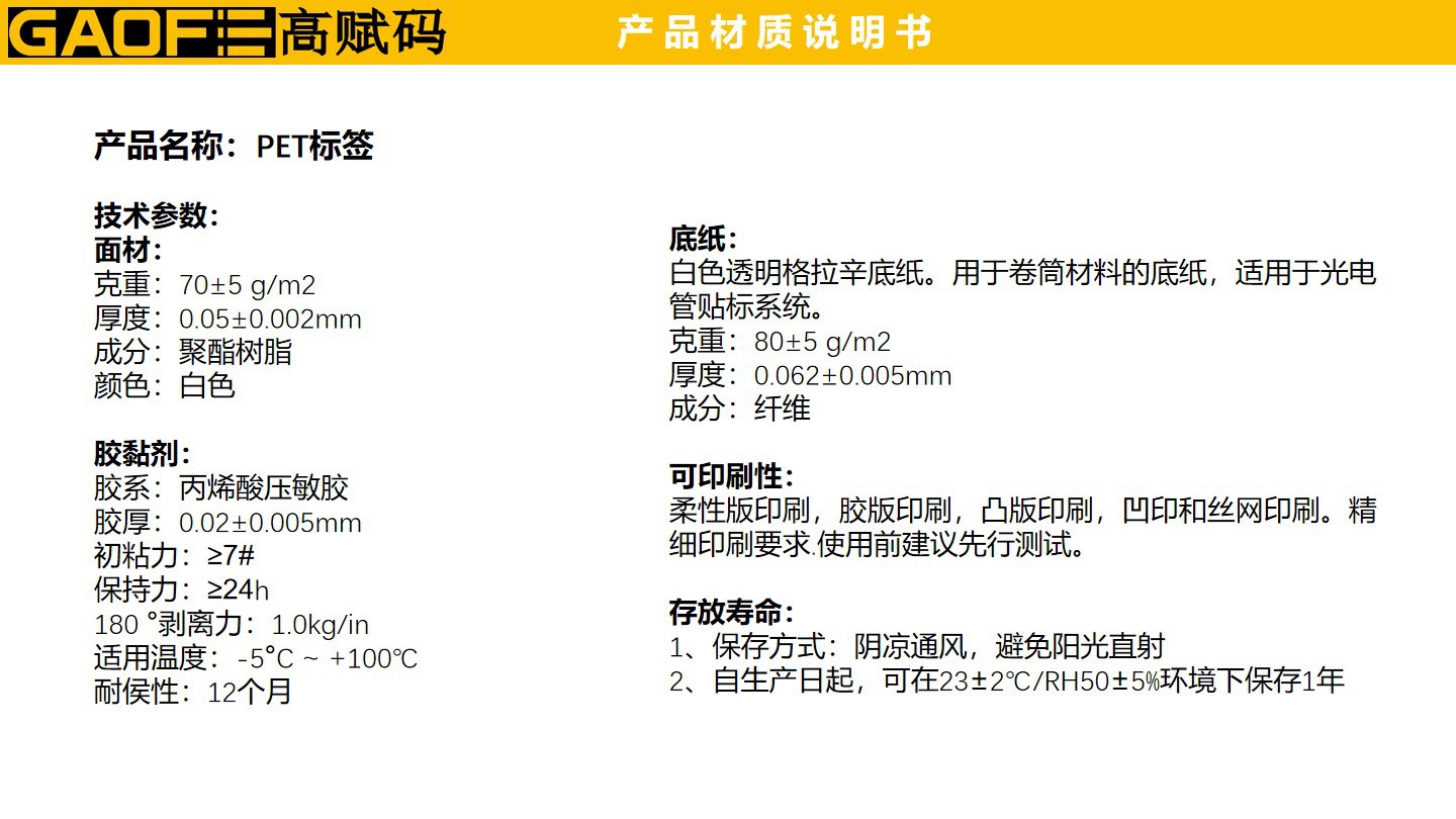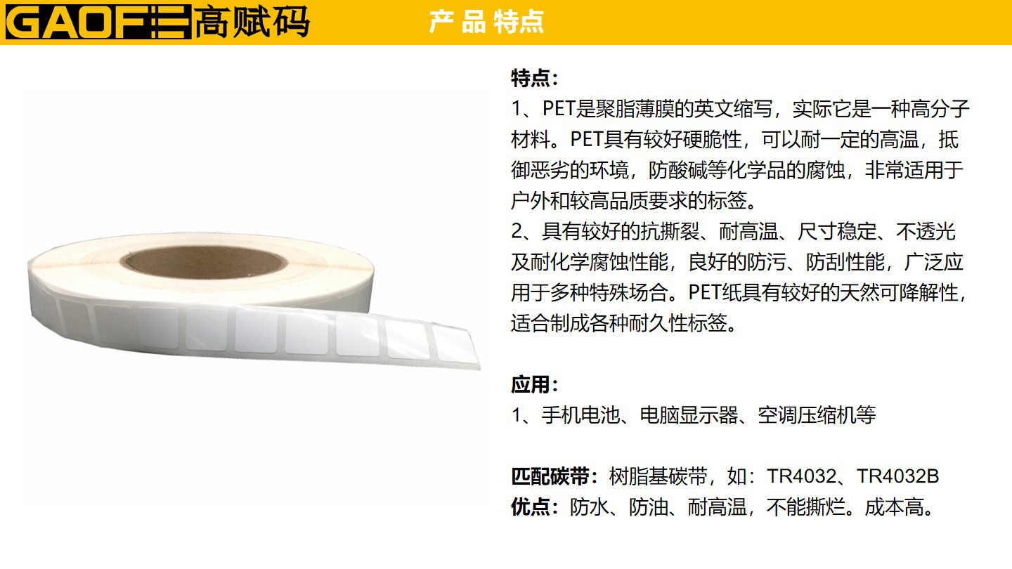 產(chǎn)品名稱:PET標(biāo)簽