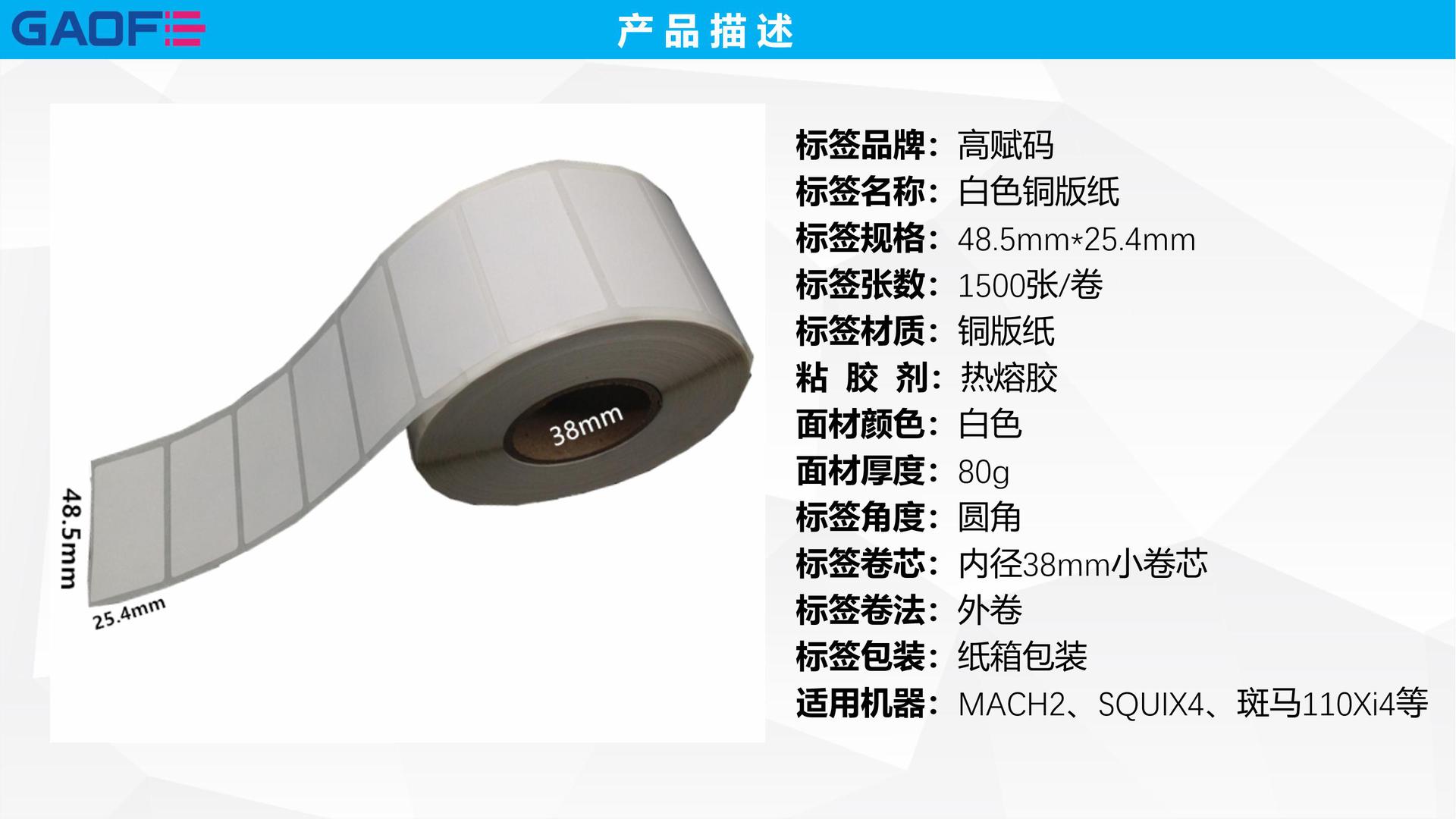 條碼不干膠標簽 銅版紙標簽紙 48.5mm*25.4mm 外箱標簽紙 高賦碼