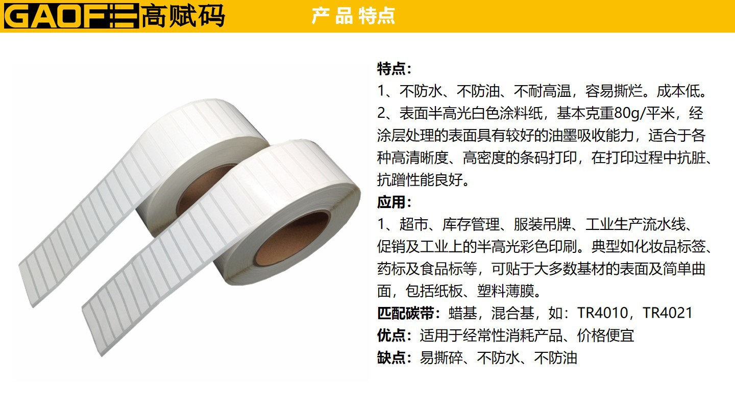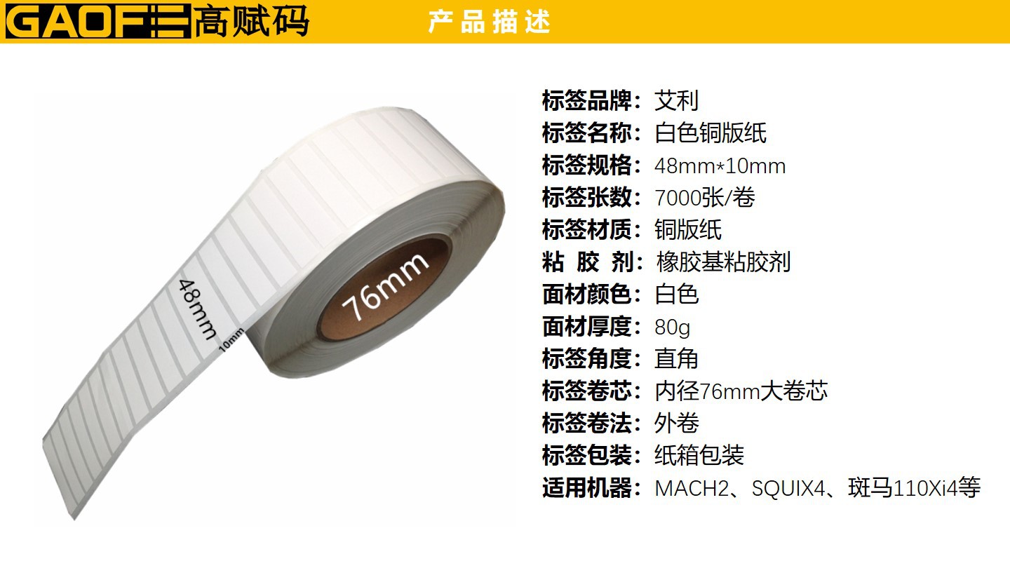 48mm*10mm條碼標(biāo)簽 強粘性標(biāo)簽 5209銅版紙 出貨紙標(biāo)簽-高賦碼