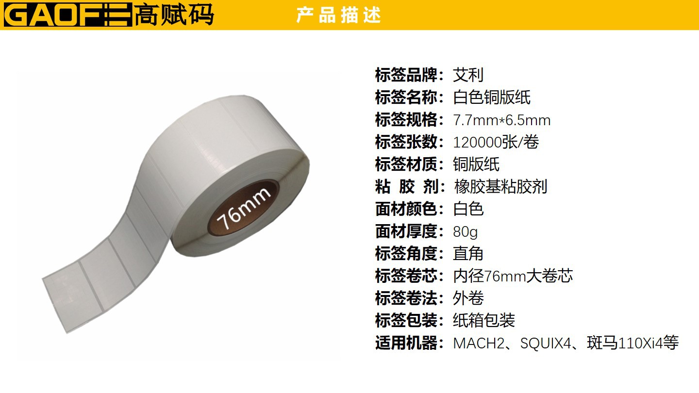 強(qiáng)粘性標(biāo)簽7.7mm*6.5mm 5209不干膠銅版紙 出貨銅版紙標(biāo)簽-高賦碼