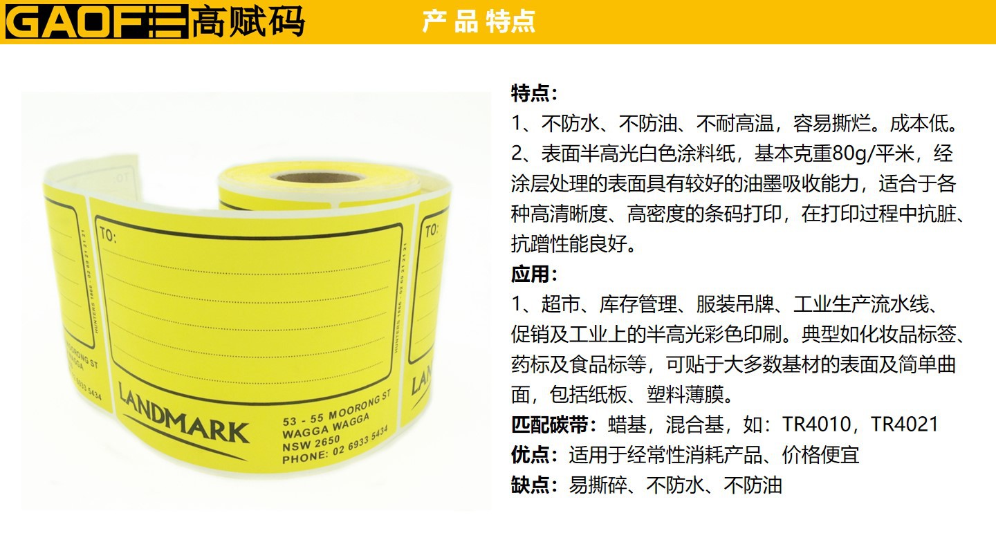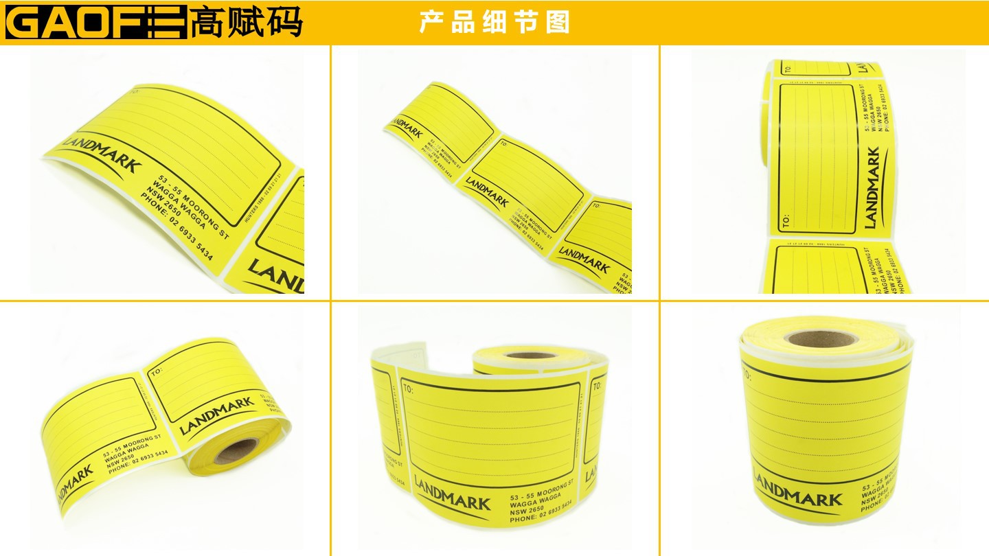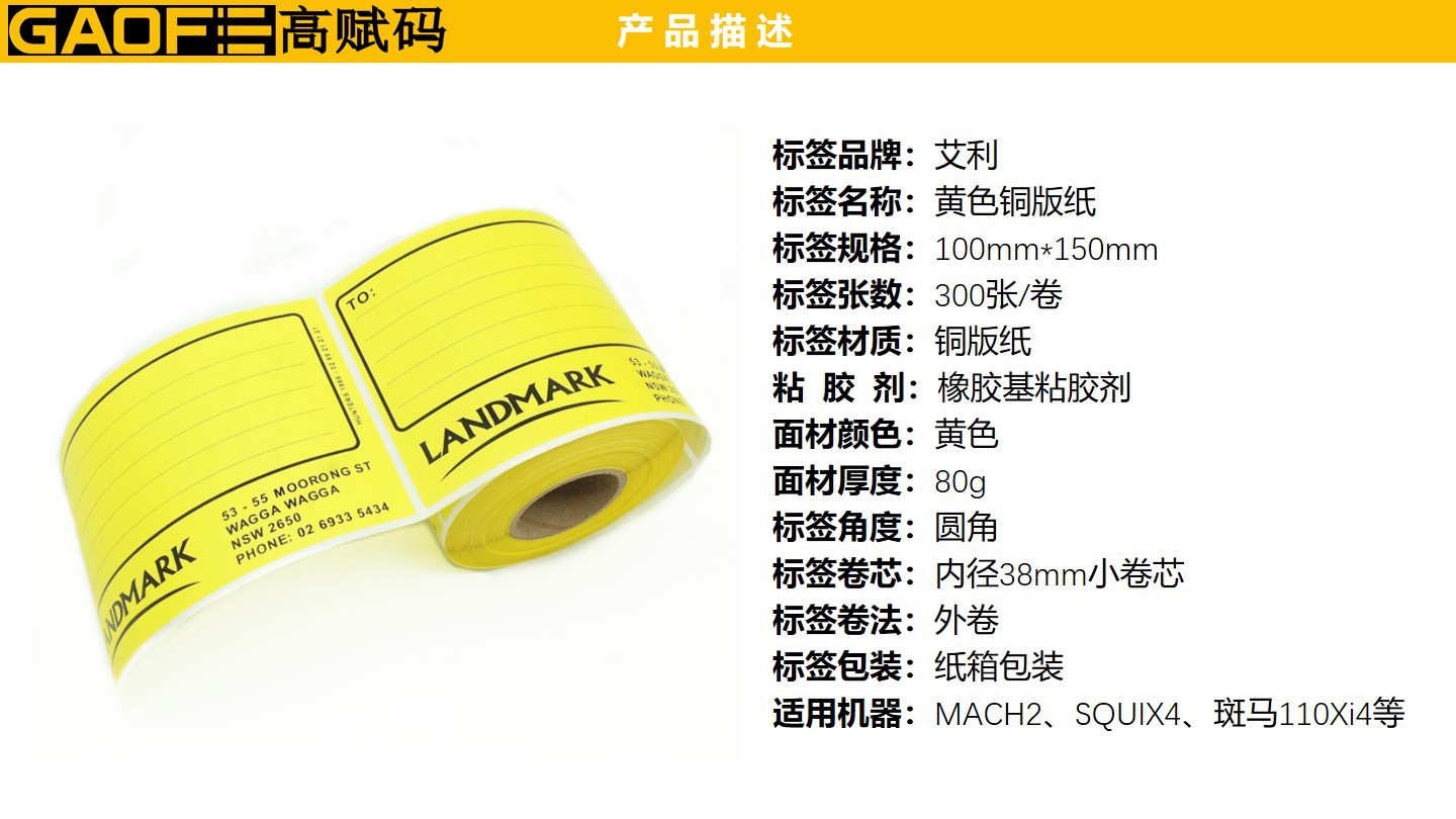 外箱紙標(biāo)簽 100mm*150mm 黃色印刷標(biāo)簽 強(qiáng)粘性 5209銅版紙-高賦碼