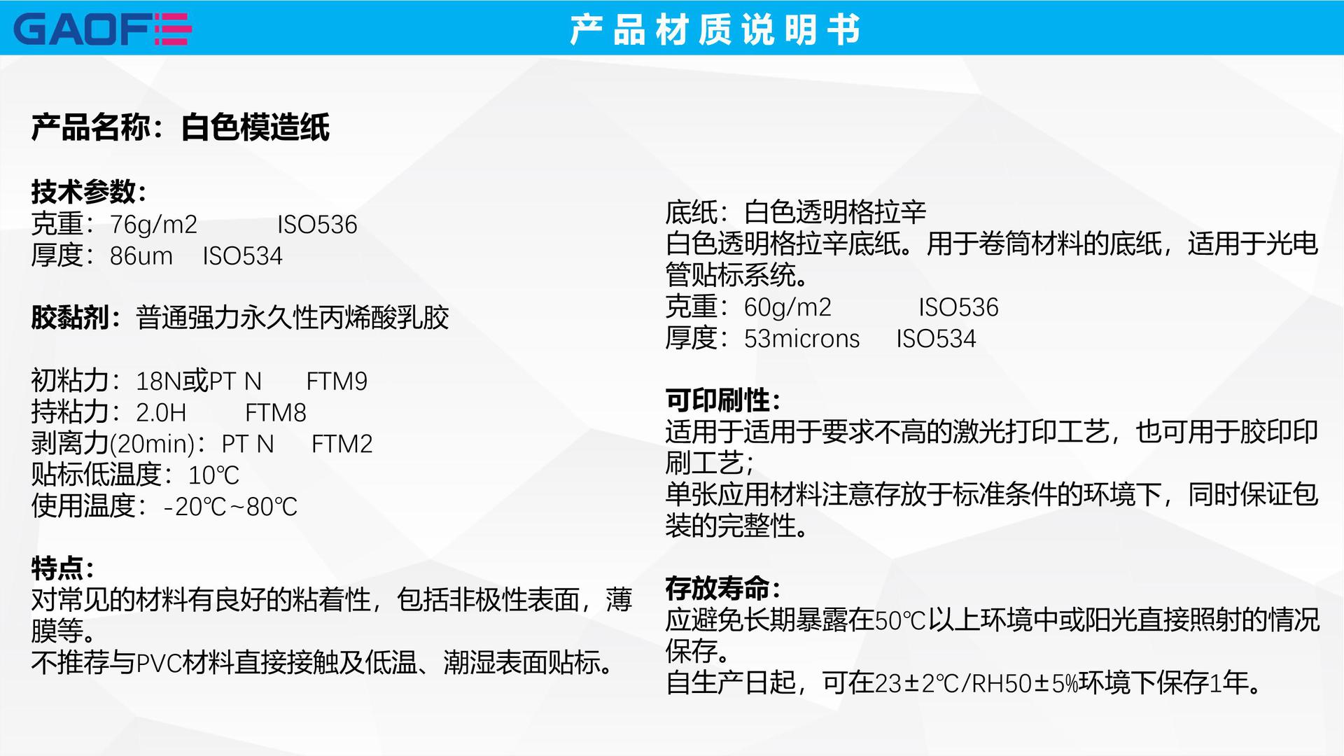 單張應用材料注意存放于標準條件的環(huán)境下,同時保證包裝的完整性。
