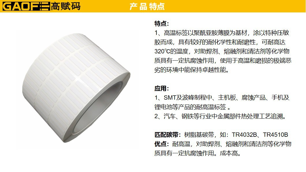 50#耐高溫啞面PI B-428G 21mm*4mm 高溫標(biāo)簽 電子行業(yè)-高賦碼