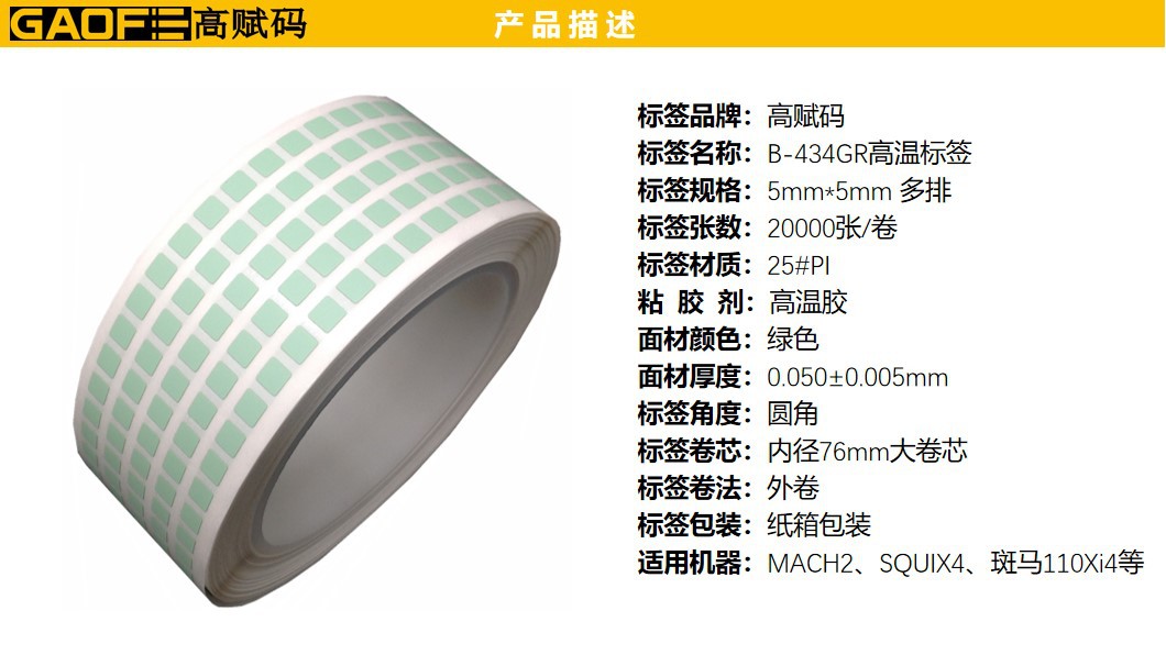 高溫標簽 B-434GG 綠色高溫PI 5mm*5mm 電子行業(yè)-高賦碼