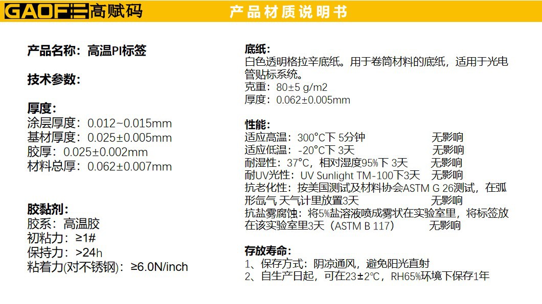 PI耐高溫標(biāo)簽