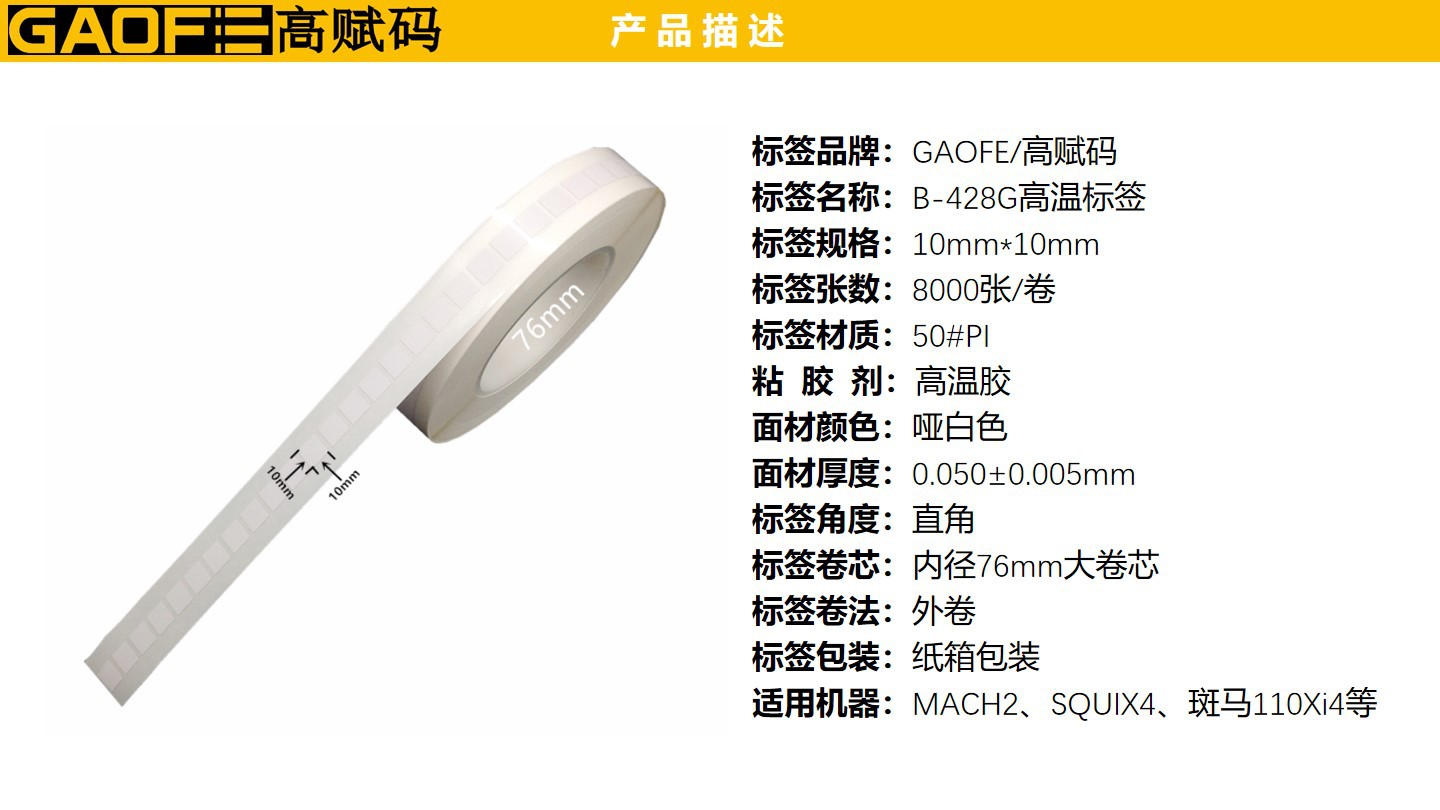 PI高溫標簽B-428G 10mm*10mm PCB板標簽 50啞面耐高溫標簽-高賦碼