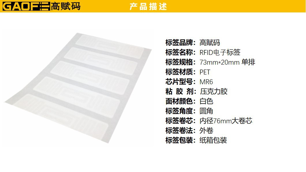 RFID電子標(biāo)簽 MR6 乳白色PET 73MMx20MM 電子標(biāo)簽 高賦碼