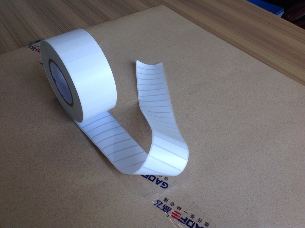 基材:25um(或50um)涂層處理聚酞亞胺薄膜,未經(jīng)涂層處理的聚酞亞胺不能滿足性能要求、涂層處理能更加地滿足工藝上所需的打印條碼性以及對材料顏色與光澤度的要求。