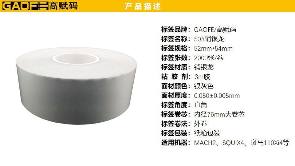 消銀龍標簽 3MPET 52X54mm 銀色標簽-高賦碼