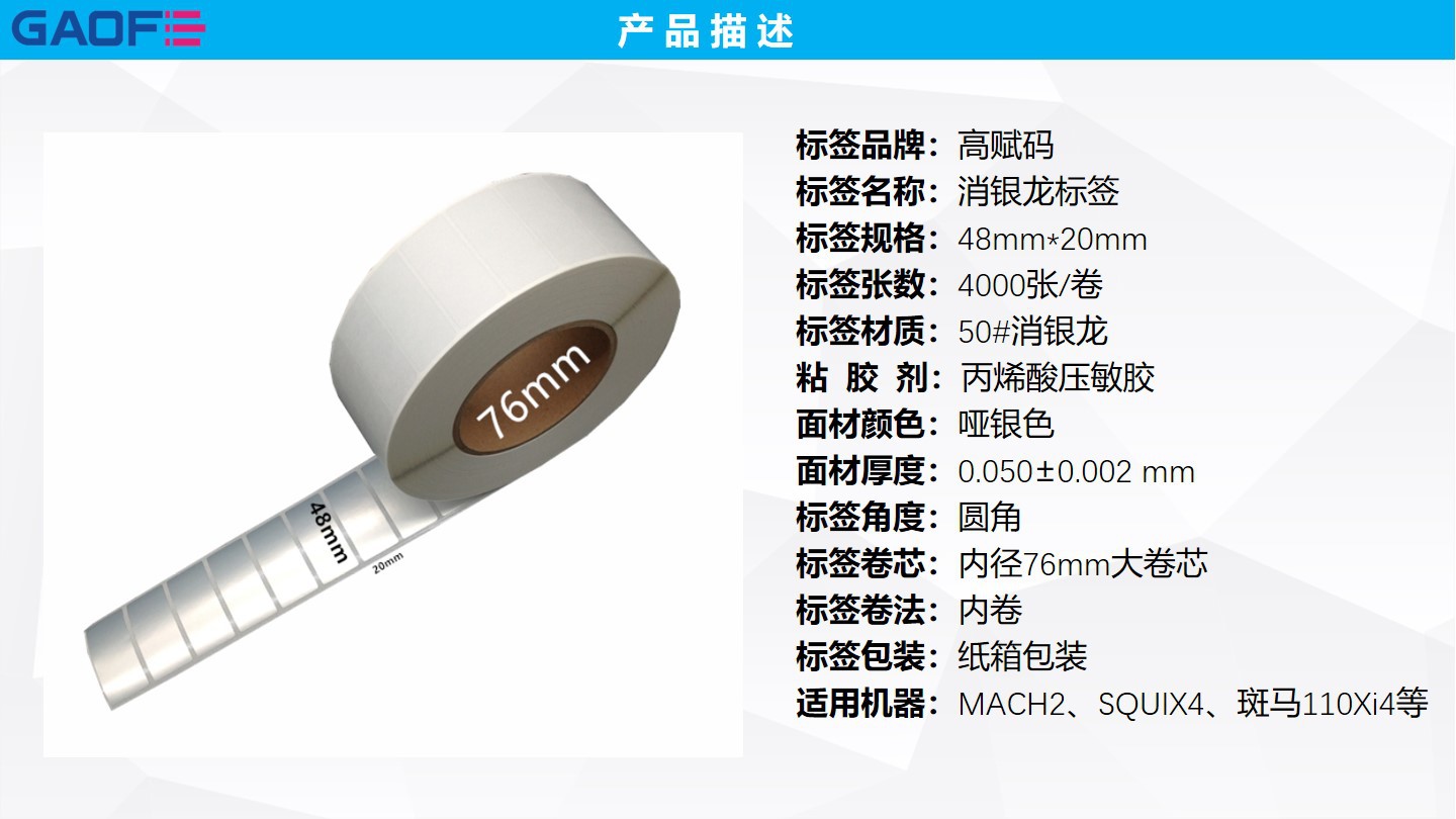耐高溫100度標簽 48mm*20mm 消銀龍標簽 銀色標簽 啞銀龍貼-高賦碼