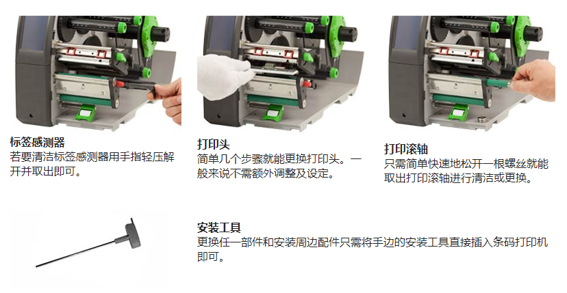 條碼打印機的機構料件皆以高品質(zhì)的材料制作且在外型及功能上達到完美的協(xié)調(diào)性。多元的周邊配件和軟件可提供客制化的解決方案。