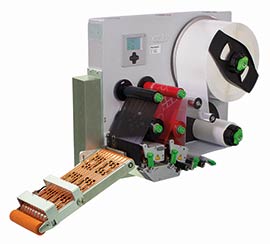 吸附式輸送帶貼標(biāo)手臂位于剝離板前。打印完成的標(biāo)簽會藉由吸附式輸送帶傳送至剝離位置并透過外部信號貼標(biāo)于包裝上。在剝離過程中可同時打印下一張標(biāo)簽。