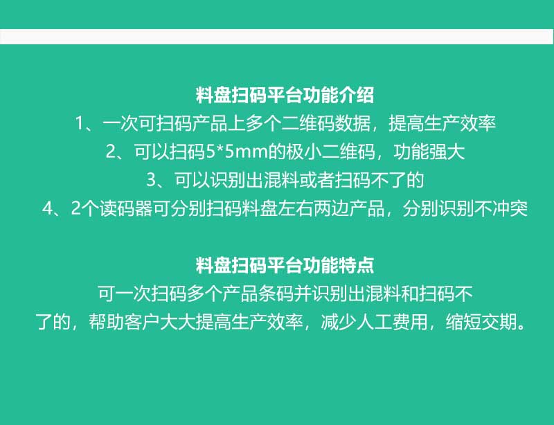 4、2個(gè)讀碼器可分別掃碼料盤左右兩邊產(chǎn)品,分別識(shí)別不沖突